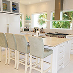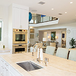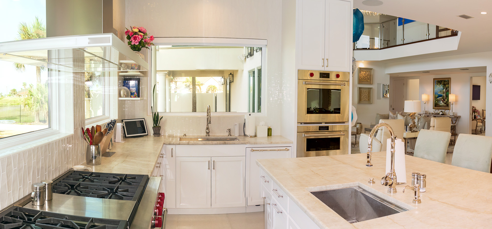 Trinity Contractors’ entire, custom two-story home remodel for our clients’ dream house features a Chef’s kitchen, several bathrooms, phenomenal ceiling treatments, balconies, an elevator and much more, along with incredible views of Corpus Christi Bay and the pool. This Trinity Contractors’ remodel was custom designed with the best materials available in Texas and Europe. The workmanship is impeccable, and each room reflects the clients’ taste for an open plan. White and bright, the house is filled with light from multiple windows and sliding glass doors.